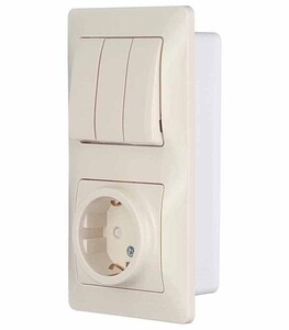 Блок выключатель и розетка Systeme Electric Glossa трехклавишный встраиваемый бежевый со шторками (GSL000278)