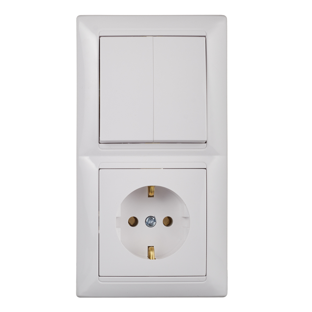 Блок выключателя с розеткой Svet SV1001 двухклавишный встраиваемый белый (SV1001-0004)
