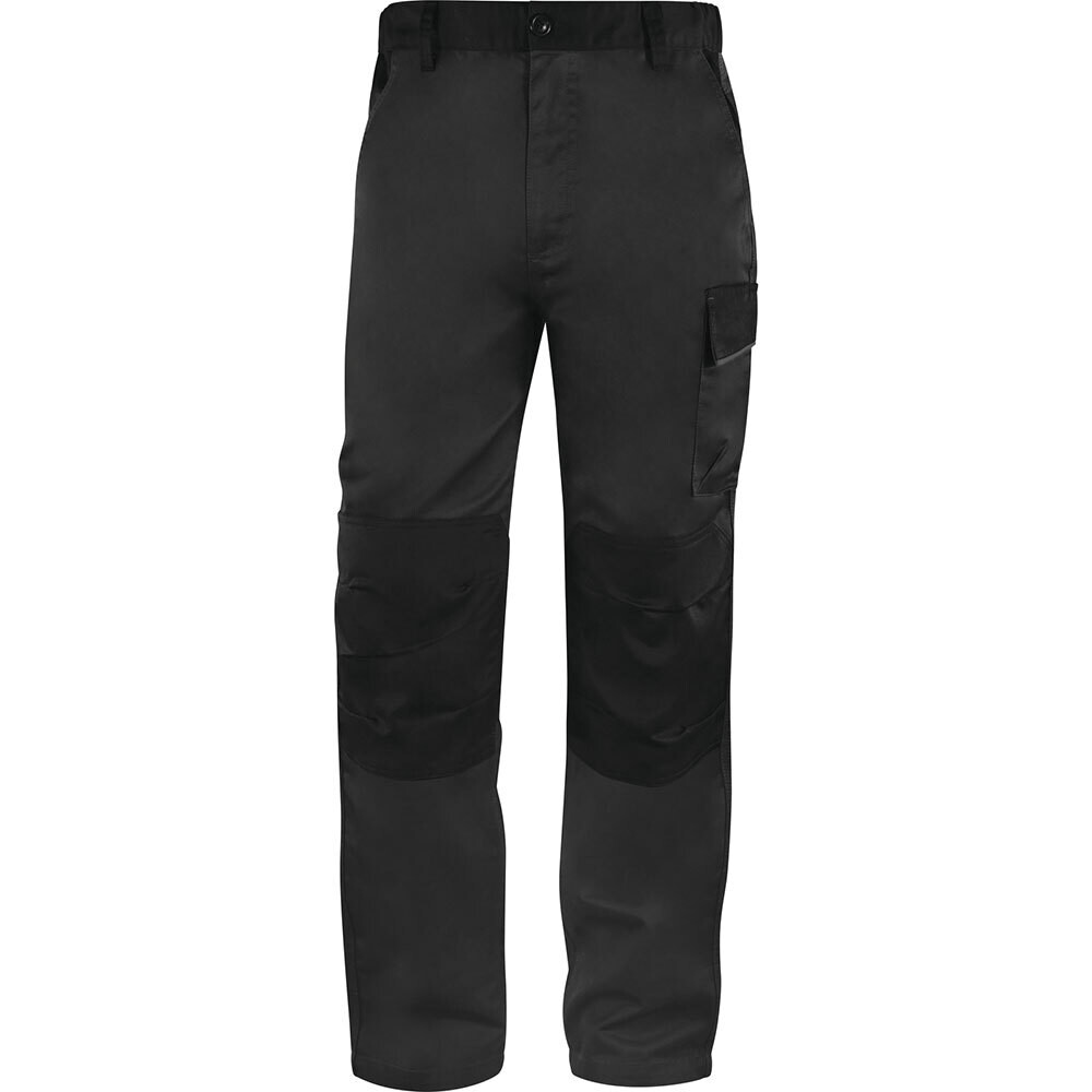 Брюки рабочие для защиты от общепроизводственных загрязнений и механических воздействий с застежкой на молнию и пуговицы, с большим количеством накладных и прорезных карманов (7 штук). Брюки изготовлены из уникальной ткани саржевого переплетения, характерная особенность ткани — диагональный рубчик, за счёт этого достигаются хорошая износостойкость, после стирки цвета не тускнеют, не выцветает на солнце. Ткань обладает высокой воздухопроницаемостью, в брюках не жарко. Материал — смесовая ткань TWILL (65% полиэстер, 35% хлопок), плотность 235 г/кв.м. Вставки по бокам из эластичной ленты для регулирования объёма по бёдрам. На поясе расположены шлевки для ношения с ремнем. Брюки имеют контрастную отделку. Тройные швы. На коленях расположены карманы для наколенников. Индивидуальная упаковка. Соответствие стандартам — ТР ТС 019/2011.