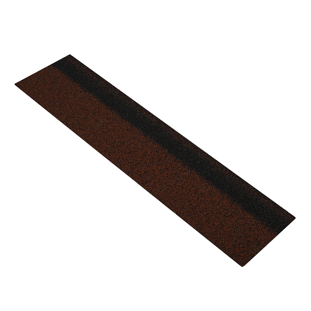 Коньково-карнизная черепица — комплектующий элемент битумной черепицы Шинглас. Предназначена для организации стартовой полосы карнизного свеса, а также для формирования ребер и коньков под мягкую черепицу Шинглас серия Ранчо цвет бронзовый.