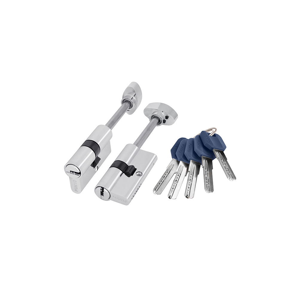 Цилиндровый механизм Punto коллекции Simple Living Z407 предназначен для установки в корпус врезных цилиндровых замков для всех типов дверей. Наличие проточек на штифтах данного цилиндра препятствует вскрытию замка отмычками. Вариант исполнения: ключ-шток с вертушкой. Тип ключа «перфорированный». Материал ключа латунь с ударопрочной пластиковой эргономичной головкой.