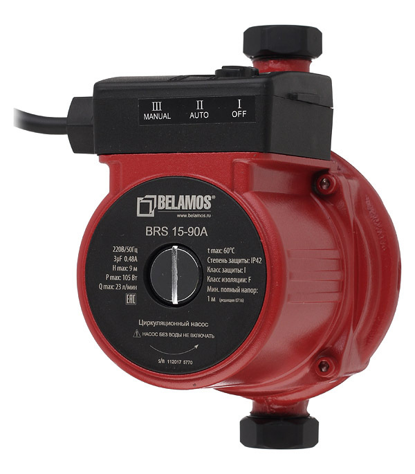 Циркуляционный насос для повышения давления Belamos BRS15/90А DN15 подъем 9 м 160 мм с гайками (19/15А)