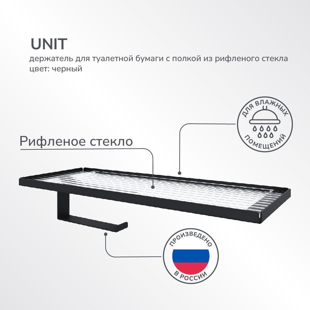 Держатель для туалетной бумаги Unit с полкой металл черный (74104565)
