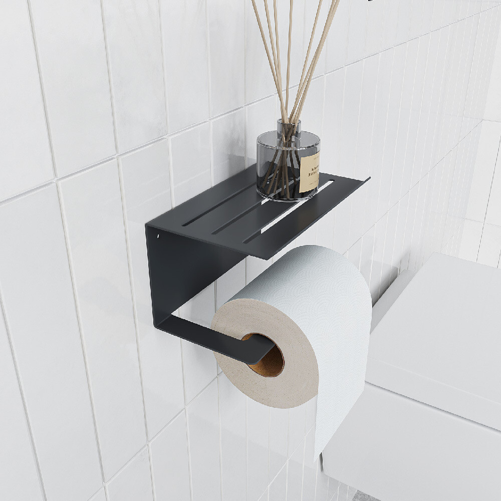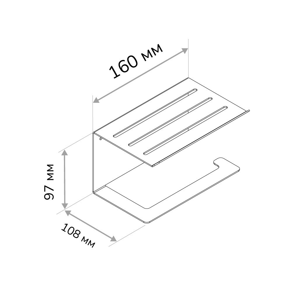 Оснащен полкой с декоративной перфорацией, что позволяет удобно размещать телефон, диффузор или небольшие элементы декора. Стильный и лаконичный дизайн держателя подойдет для любых интерьеров.