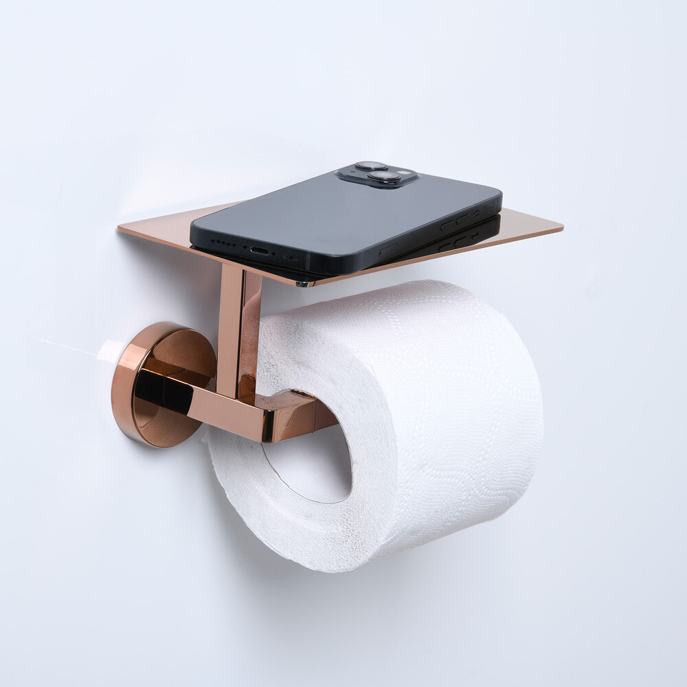 Держатель для туалетной бумаги WasserKraft с полкой металл золото (K-77725)
