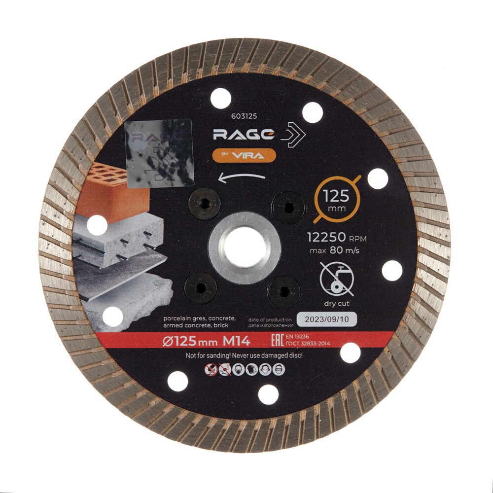 Диск алмазный по бетону Rage by Vira 125х22,2х1,8 мм турбо с фланцем М14 сухой рез (603125)