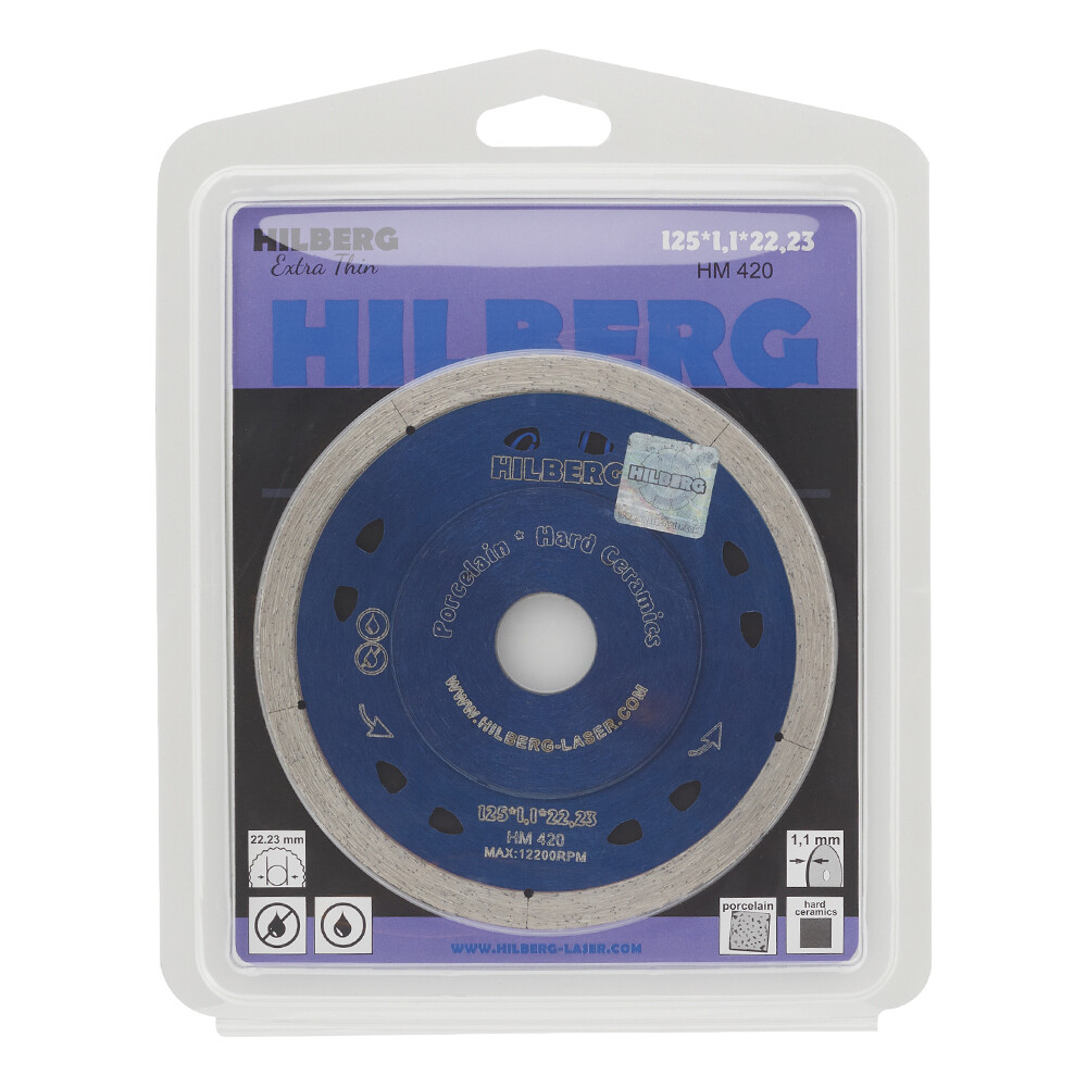 Диск алмазный по керамограниту Hilberg Extra Thin 125×22,2×1,1 мм сплошной ультратонкий сухой рез (HM420)