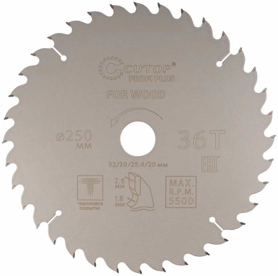 Диск пильный по дереву Cutop Profi plus 250х32/30/25,4/20х2,6 мм 36 зубьев (75-25036Т)