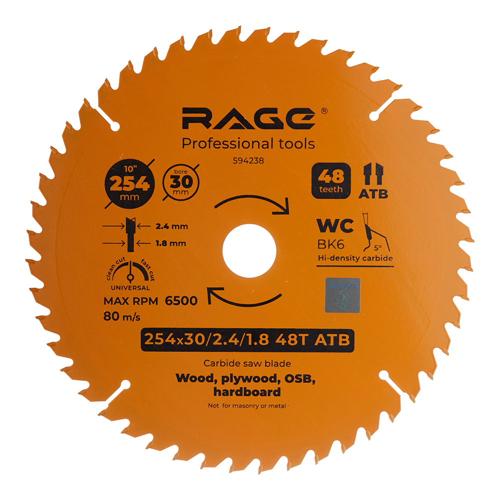 Диск пильный по дереву Rage by Vira Universal 254х30х1,8 мм 48 зубьев (594238)
