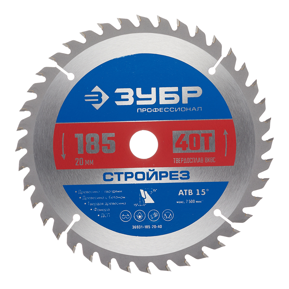 Диск пильный по строительной древесине Зубр 185х20х1,4 мм 40 зубьев (36931-185-20-40)