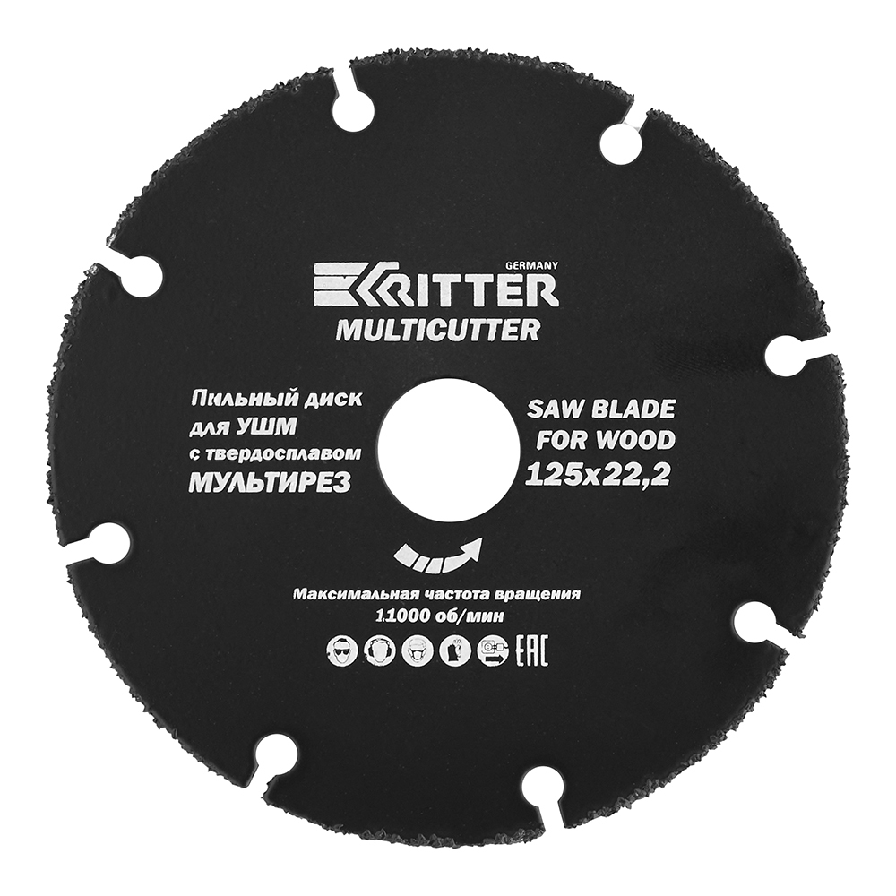 Диск пильный Ritter Multi c твердосплавным напылением, предназначен для резки по дереву/пластику/газосиликату исключительно в комбинации с углошлифовальными машинками.