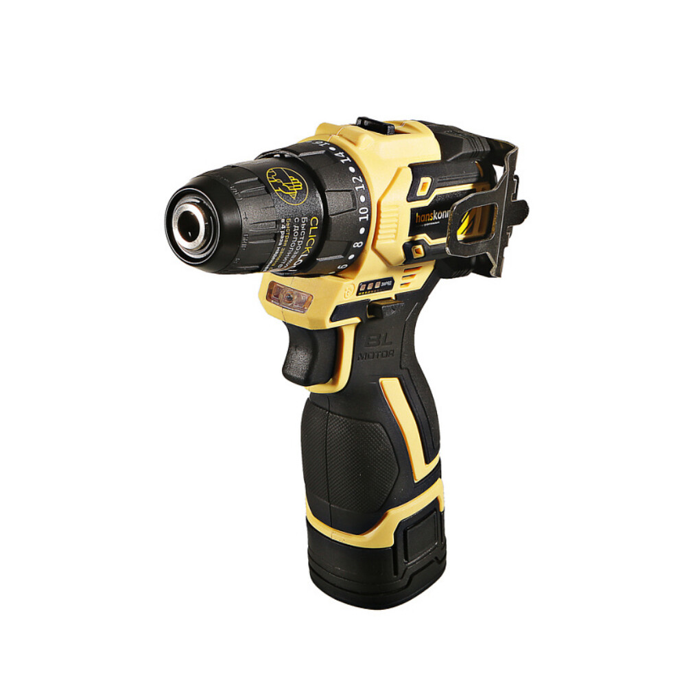 Аккумуляторная дрель-шуруповерт Hanskonner с бесщеточным двигателем — одна из самых мощных и компактных в своем классе. Одномуфтовый быстрозажимной пластиковый патрон ClickLock позволяет менять оснастку одной рукой. 20 ступеней регулировки усилия затяжки позволяют работать с самыми мягкими и деликатными материалами. Фирменные подшипники C&U увеличивают ресурс работы инструмента на 50%. Для комфортной работы, а также для работы в слабоосвещенных местах, на шуруповерте сделана яркая светодиодная подсветка. Индикатор заряда аккумулятора позволит постоянно контролировать уровень заряда и не начинать работу с разряженным аккумулятором. Специальная скоба с возможностью установки как справа, так и слева позволит повесить шуруповерт на поясе, чтобы он постоянно находился «под рукой».