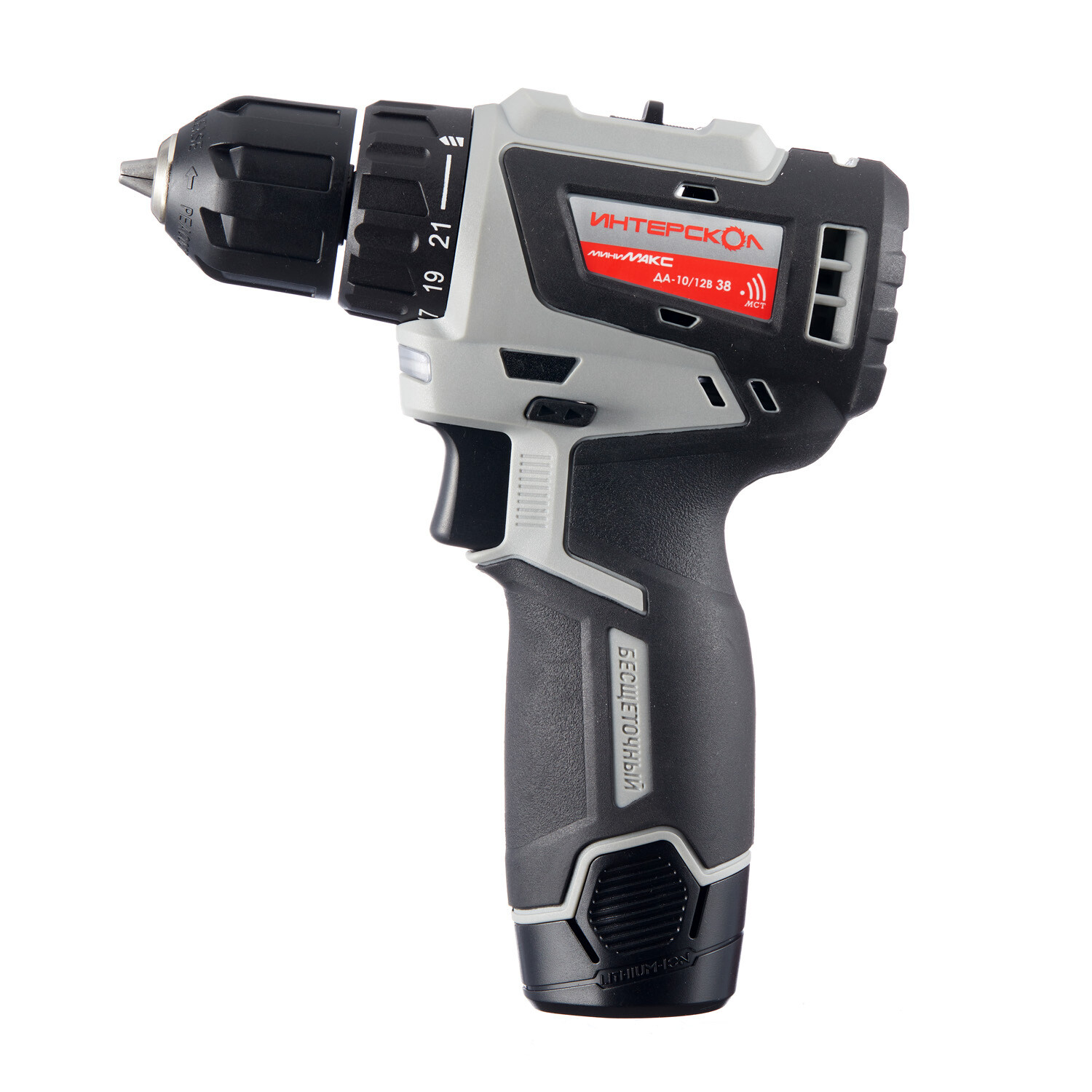 Дрель-шуруповерт аккумуляторная бесщеточная Интерскол ДА-10/12В 38 12 В 2 Ач Li-Ion 2 АКБ и ЗУ (757.2.2.45)
