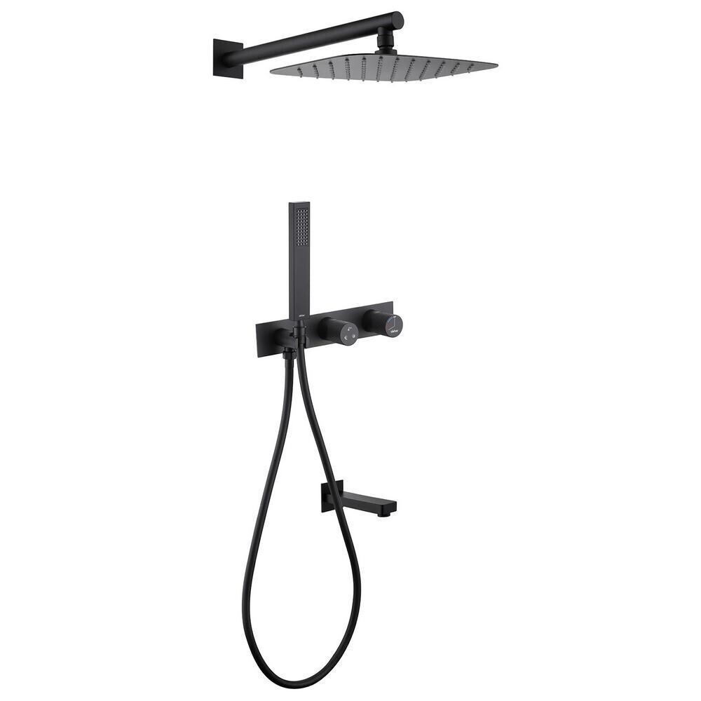 Душевая система Abber Rund встраиваемая с верхним душем с лейкой со смесителем черная матовая (AF8717B)