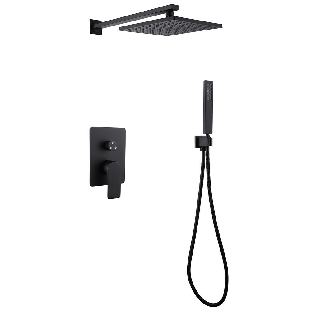 Душевая система Abber Weiss Insel встраиваемая с верхним душем с лейкой со смесителем черная матовая (AF8018B)