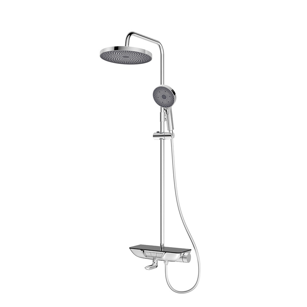 Комплектация: Верхняя лейка 260 мм, лейка для душа d130 мм 3 режима, держатель лейки, шланг для душа 150 см, штанга для душа, смеситель.