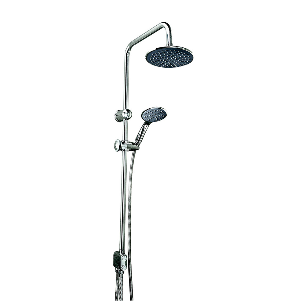 Комплектация: стойка для душа, лейка ручного душа, лейка верхнего душа, душевой шланг — 1500 мм, душевой шланг 800 мм.