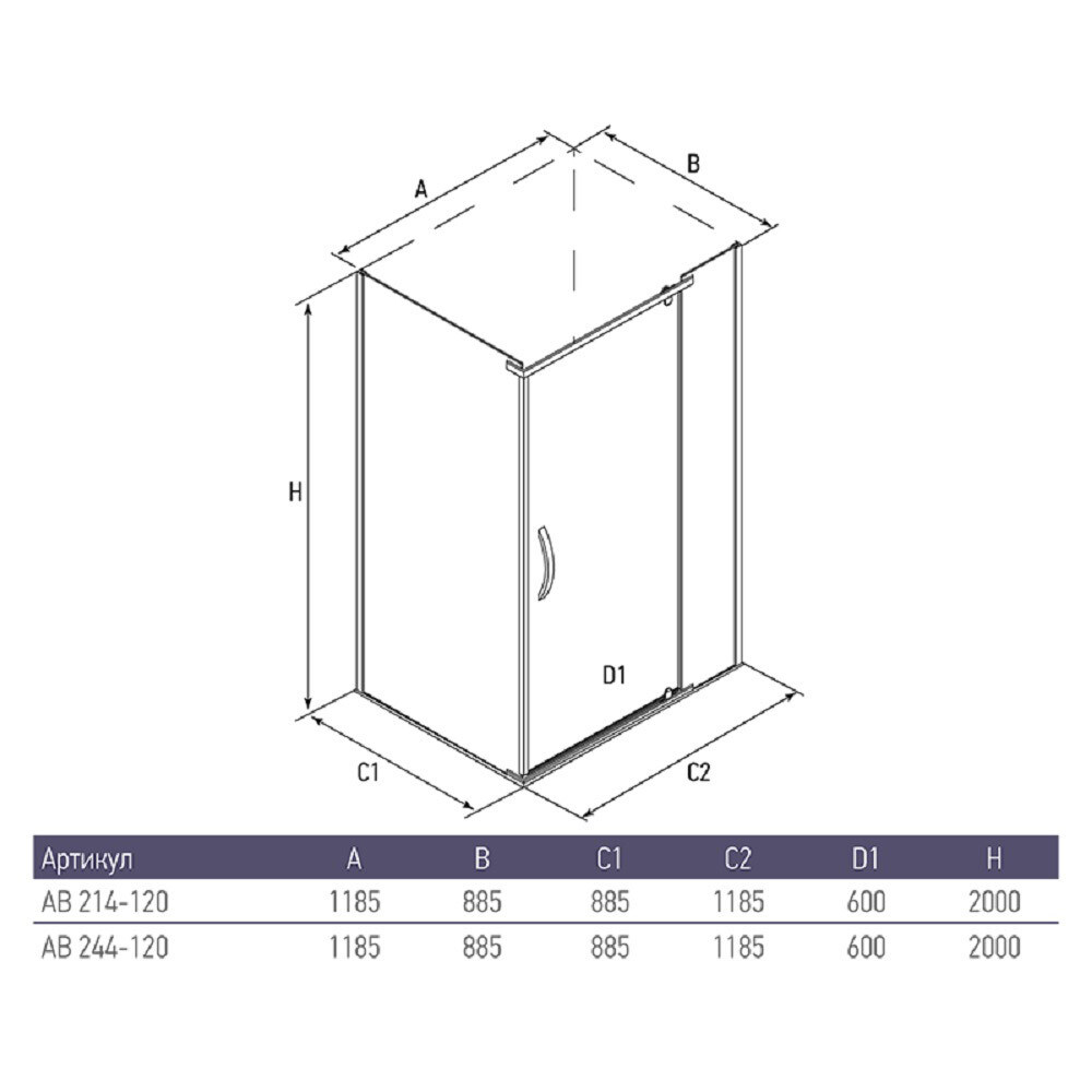 Душевой уголок Alex Baitler Серия 2 хром 120х90х200 см прямоугольник стекло прозрачное 8 мм (AB214-120)