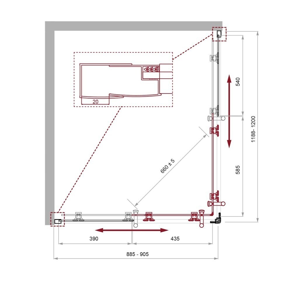 Универсальный душевой уголок Uno подчеркнет современный стиль ванной комнаты. Конструкция выполнена из безопасного прозрачного закаленного стекла толщиной 5 мм, помещенного в хромированный профиль из анодированного алюминия. Две раздвижные двери установлены на двойные подшипниковые ролики из цинкового сплава, которые рассчитаны на 35 000 рабочих циклов. Они закрываются максимально герметично. Боковые профили регулируются по ширине, что значительно упрощает и облегчает монтаж. Установка на пол или на поддон.