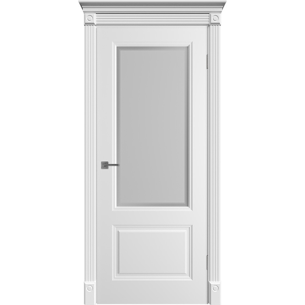 Дверь межкомнатная Норра 2 600х2000 мм эмаль белая со стеклом с замком и петлями