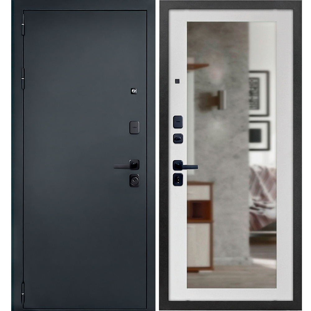 Дверь входная Дверной континент Брест левая антик серебро — белый матовый с зеркалом 960х2050 мм