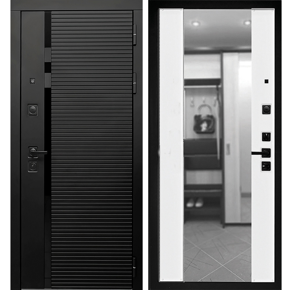 Дверь входная Дверной континент Палермо правая черный кварц — ясень белый софт с зеркалом 860х2050 мм