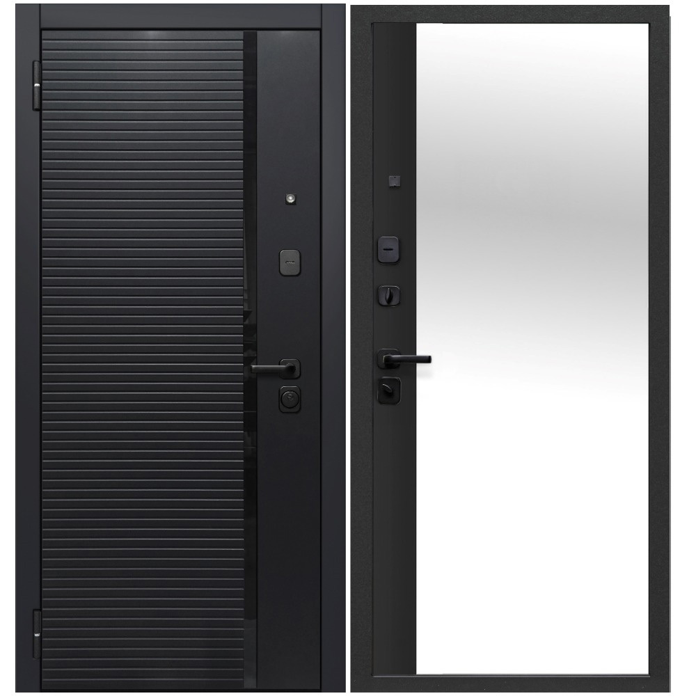 Дверь входная Ferroni 7,5СМ Черное зеркало левая сатин черный — сатин черный 860х2050 мм