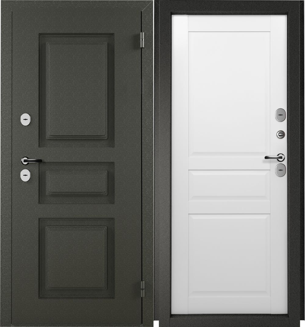 Дверь входная с терморазрывом Промет Норд правая букле графит — нубук белый 980х2050 мм