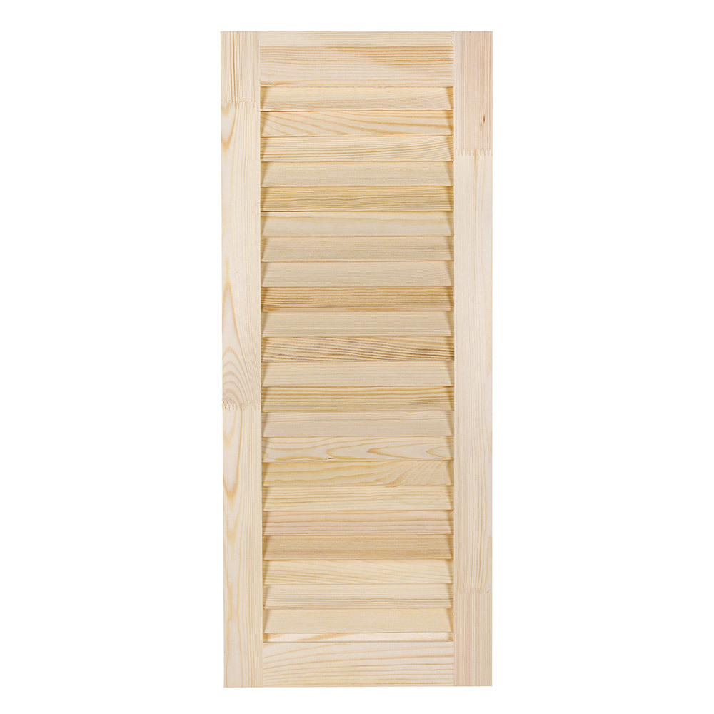 Дверь жалюзийная, хвоя сорт А. Дверь может быть использована в гардеробных, шкафах, прихожих, в туалете и ванных комнатах, в кухне и на кухонных гарнитурах. Фасады изготовлены из хвойных пород деревьев с соблюдением требуемых стандартов.