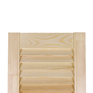 Дверь жалюзийная, хвоя сорт А. Дверь может быть использована в гардеробных, шкафах, прихожих, в туалете и ванных комнатах, в кухне и на кухонных гарнитурах. Фасады изготовлены из хвойных пород деревьев с соблюдением требуемых стандартов.