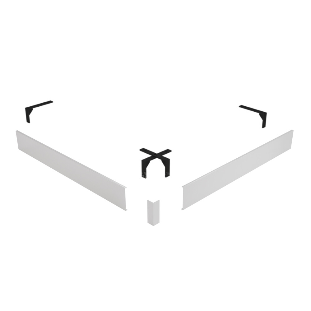 Комплектация: Экраны (фронтальный и боковой), соединительный уголок, крепление к ножкам, на которые устанавливается поддон.