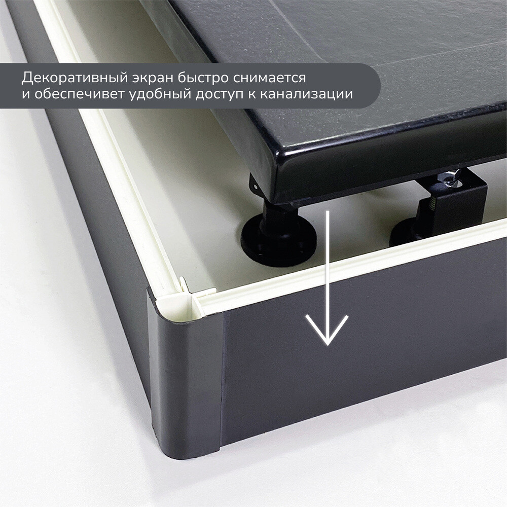 Экран выполнен из ПВХ и не подвержен воздействию влаги. Он обеспечивает простой доступ к канализации, что делает его удобным в обслуживании и быструю замену или ремонт в случае необходимости. Экран легко монтируется и устанавливается, что позволяет сократить время и затраты на установку. Он обеспечивает дополнительную приватность и защиту от брызг воды во время принятия душа. Экран для поддонов позволяет визуально увеличить пространство ванной комнаты, и скрыть каркас и трубы, что дает эстетичный вид.