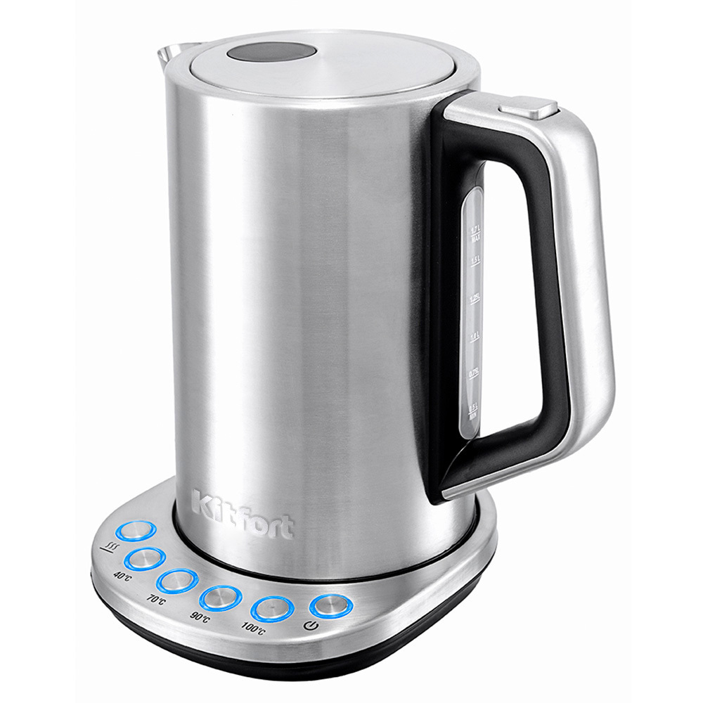 Электрический чайник с терморегулятором Kitfort КТ-621 может не только вскипятить воду, но и нагреть ее до температуры 40, 70 и 90°С.