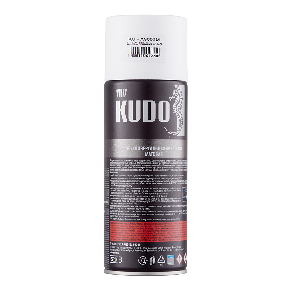 Эмаль аэрозольная Kudo Arte белая матовая RAL 9003 520 мл