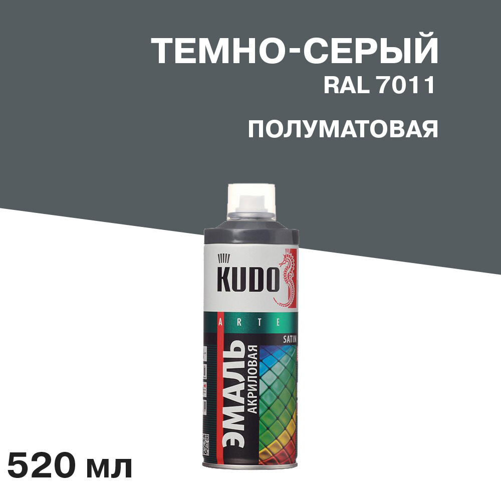 Эмаль аэрозольная Kudo Satin темно-серая полуматовая RAL 7011 520 мл