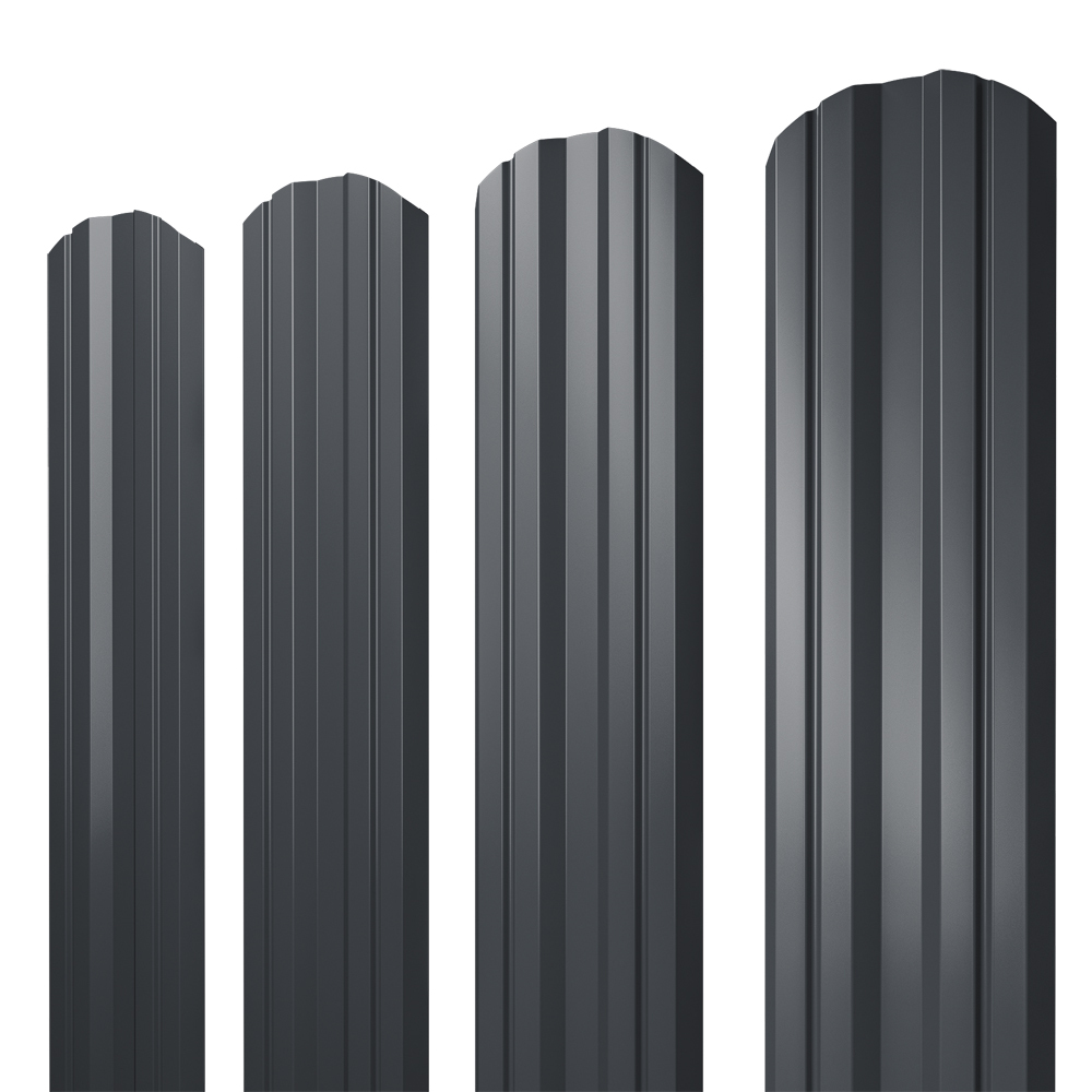 Евроштакетник двухсторонний twin 0,45 мм 100х2000 мм графитовый серый RAL 7024 фигурный срез