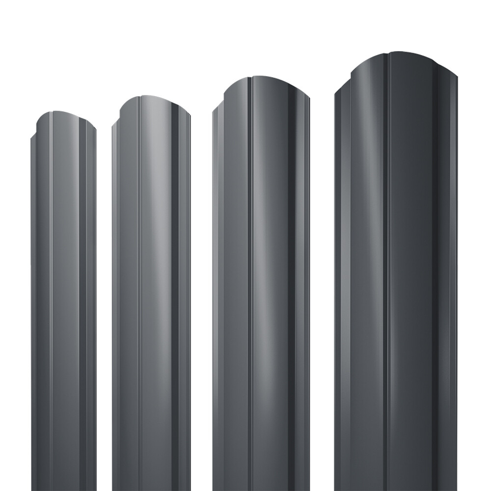 Евроштакетник односторонний полукруглый slim 0,45 мм 100х1800 мм графитовый серый RAL 7024 фигурный срез