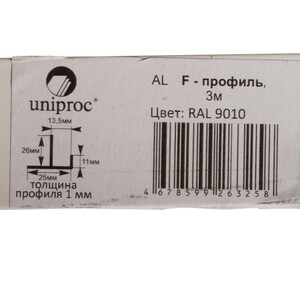 F-профиль алюминиевый 3 м 1 мм белый RAL 9010