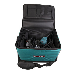 Комплектация: погружное основание, наклонное основание, параллельная направляющая, ключи 13 и 22 мм, цанги 6 и 8 мм, копировальные кольца 10 и 16 мм, переходники к пылесосу (для погружного и наклонного оснований), копировальный упор, боковая рукоятка, сумка.