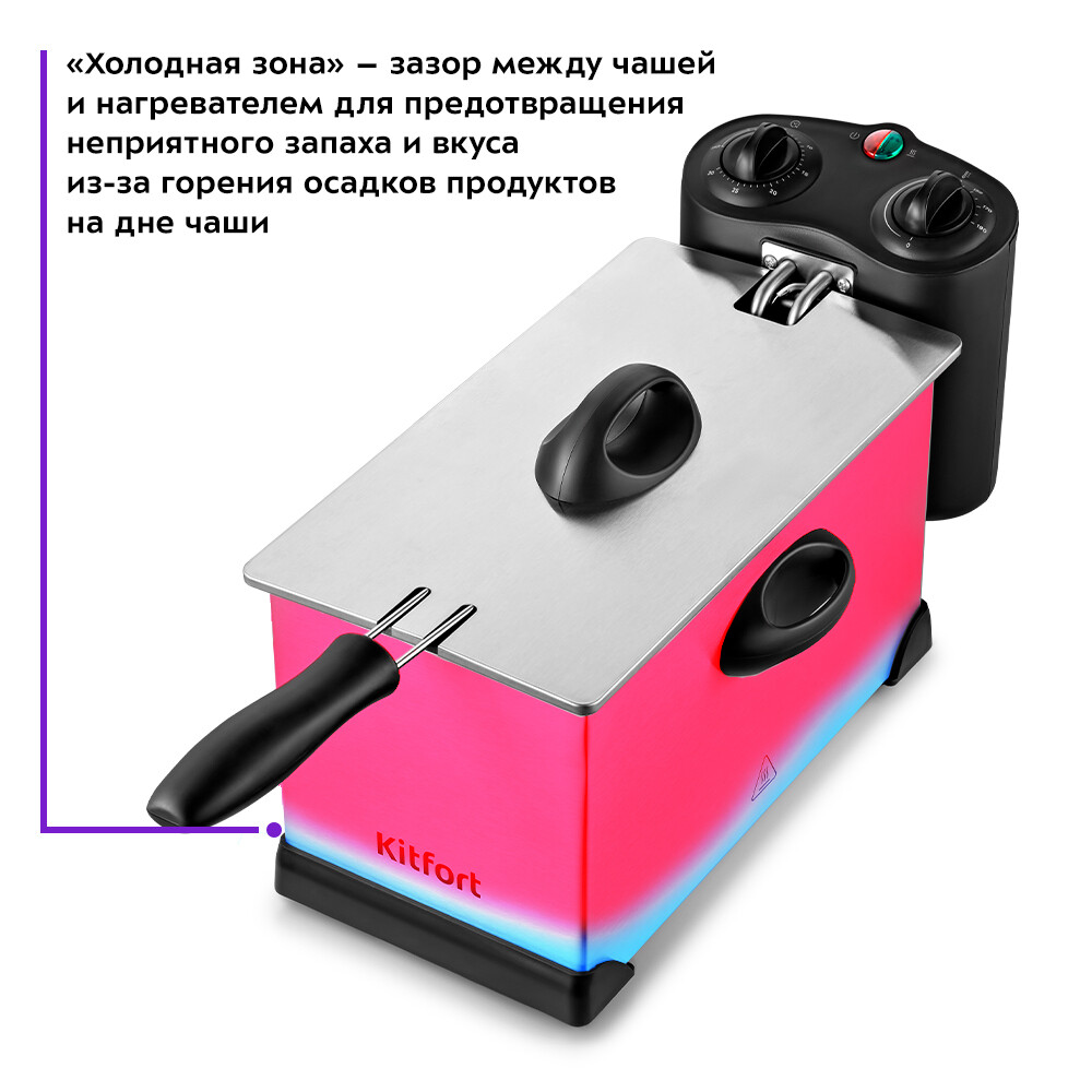 Продукты во фритюрнице Kitfort КТ-4052 готовятся быстрее, чем на сковороде из-за короткого воздействия высокой температуры со всех сторон. Хорошо зажаренные во фритюре продукты покрыты хрустящей корочкой, под которой почти нет масла. Регулятором выбирается температура приготовления от 130 до 190 °С. Индикатор питания горит, когда устройство включено. Индикатор нагрева сигнализирует о том, что идет процесс нагрева. По достижению заданной температуры он гаснет. Боковые ручки, ручки крышки и корзины выполнены из термостойкой пластмассы. Благодаря им прибор легко переставлять с места на место, а крышку и корзину снимать даже во время приготовления без риска обжечься. Для приготовления чаша должна быть заполнена маслом не ниже отметки min (2,5 л). Также не рекомендуется наливать масла выше отметки max (3 л). Заполнение корзины продуктом допус…
