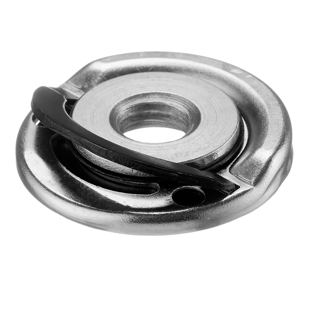 Предназначена для установки дисков с посадкой 22,2 мм. Планшайба (гайка) быстрозажимная Практика 246-289 для угловой шлифмашины. Резьба М14. Гайка Для быстрого монтажа и демонтажа дисков фиксация гайки производится рукой. В гайке дополнительно предусмотрены отверстия под штырьковый ключ 30 мм, который может быть использован в случае чрезмерной фиксации гайки вследствие самозатягивания.