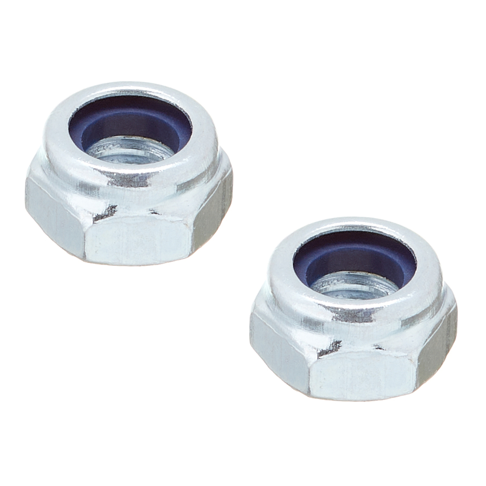 Предназначены для создания разъемного соединения деталей и конструкций в сочетании с болтами соответствующего диаметра. Имеют шестигранную форму (под гаечный ключ) с отверстием, в котором нарезана резьба. Нейлоновая вставка в гайке предотвращает самопроизвольное откручивание и обеспечивает герметичность резьбы. Цинковое покрытие защищает от коррозии.