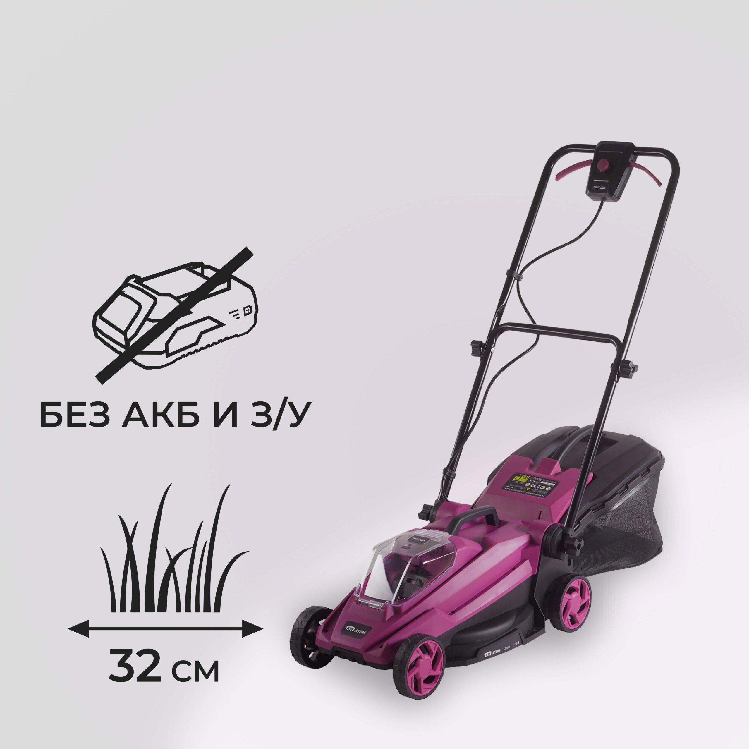 Главная / Каталог / Сад и досуг / Садовая техника и комплектующие / Газонокосилки / Аккумуляторные газонокосилки / Газонокосилка аккумуляторная КМ АТОМ 18 В 320 мм без АКБ и ЗУ (CL-182)