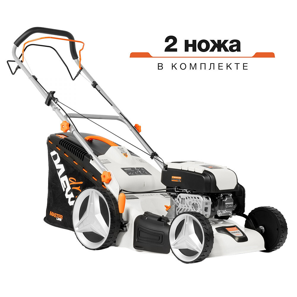Производительность газонокосилки обеспечивает четырехтактный двигатель производства компании Daewoo мощностью 5 лошадиных сил с рабочим объемом 155 кубических сантиметров. Емкость топливного бака 0,8 литра.