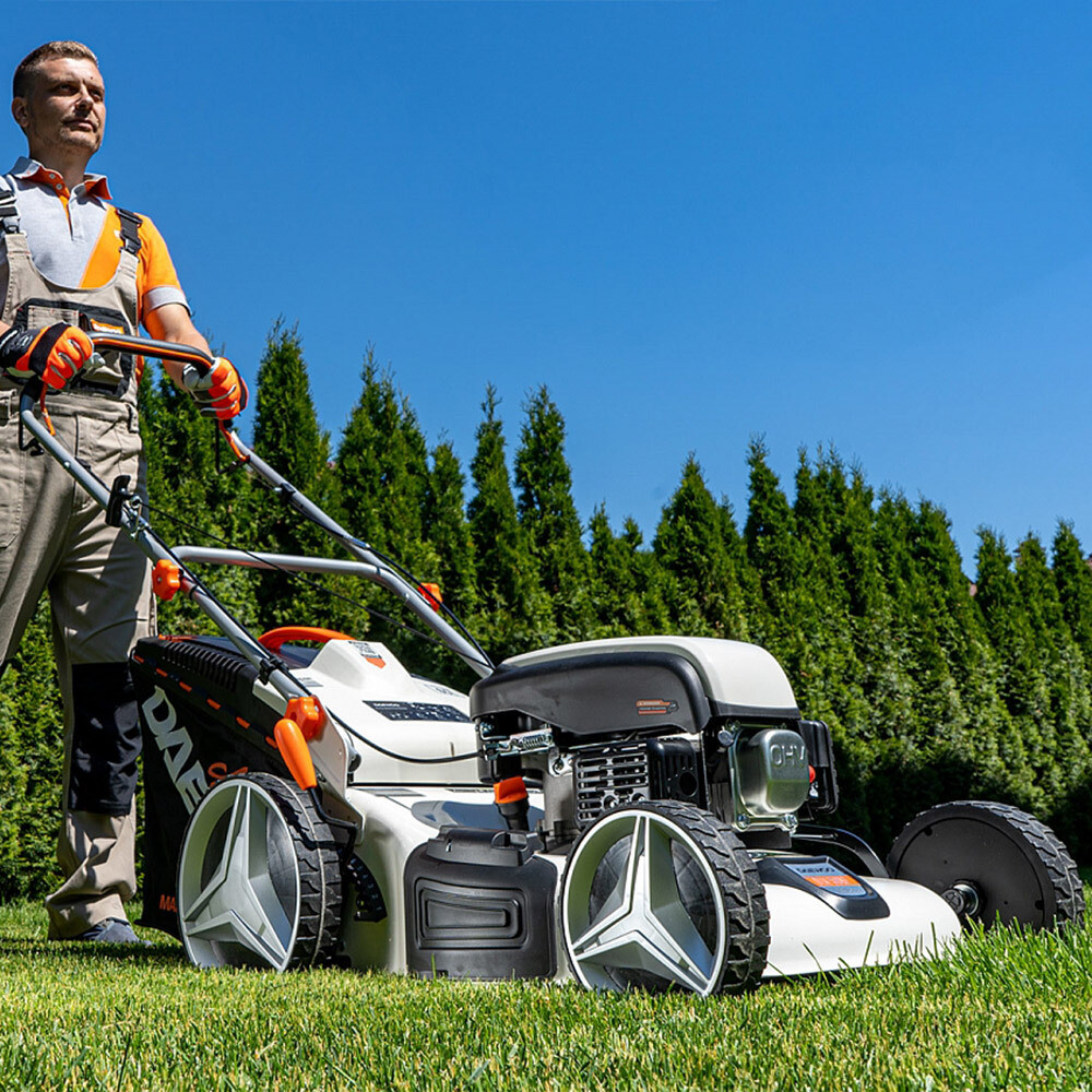 Производительность газонокосилки обеспечивает четырехтактный двигатель производства компании Daewoo мощностью 5 лошадиных сил с рабочим объемом 155 кубических сантиметров.