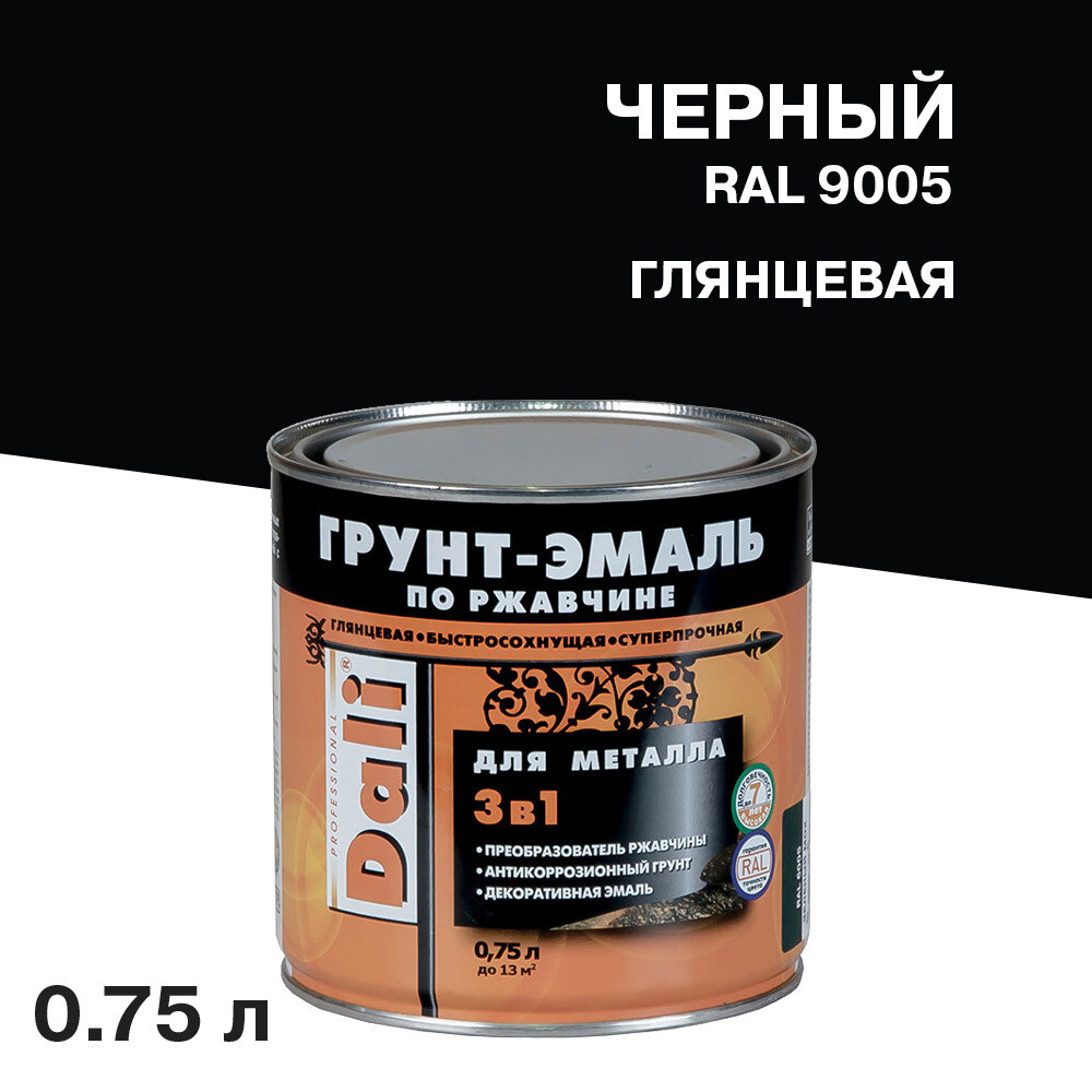 Грунт-эмаль по ржавчине 3в1 Dali черная RAL 9005 глянцевая 0,75 л