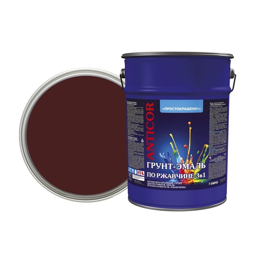 Грунт-эмаль по ржавчине 3в1 Простокрашено шоколадная глянцевая 5 кг