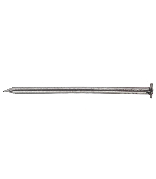Гвоздь представляет собой длинный и прямой стержень с небольшими неровностями рядом со шляпкой, что улучшает качество соединения.