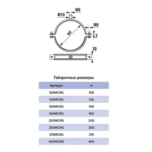 Предназначен для крепления воздуховодов диаметром 250 мм к стене или к полу. На хомуте есть универсальная гайка с внутренней резьбой М 8/10.