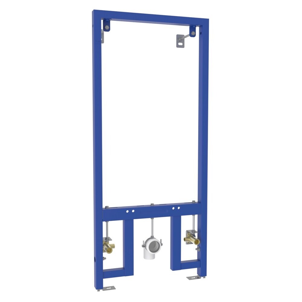 Инсталляция для биде с выходом на горячую и холодную воду. Каркас выполнен из металла, окрашенного антикоррозийной эмалью, что значительно увеличивает срок службы. Инсталляционная рама имеет ширину 50 см. Высота регулируется от 1123 до 1363 мм. Инсталляция выдерживает нагрузку в 400 кг, обеспечивая надежное крепление биде. Есть возможность монтажа в угол.